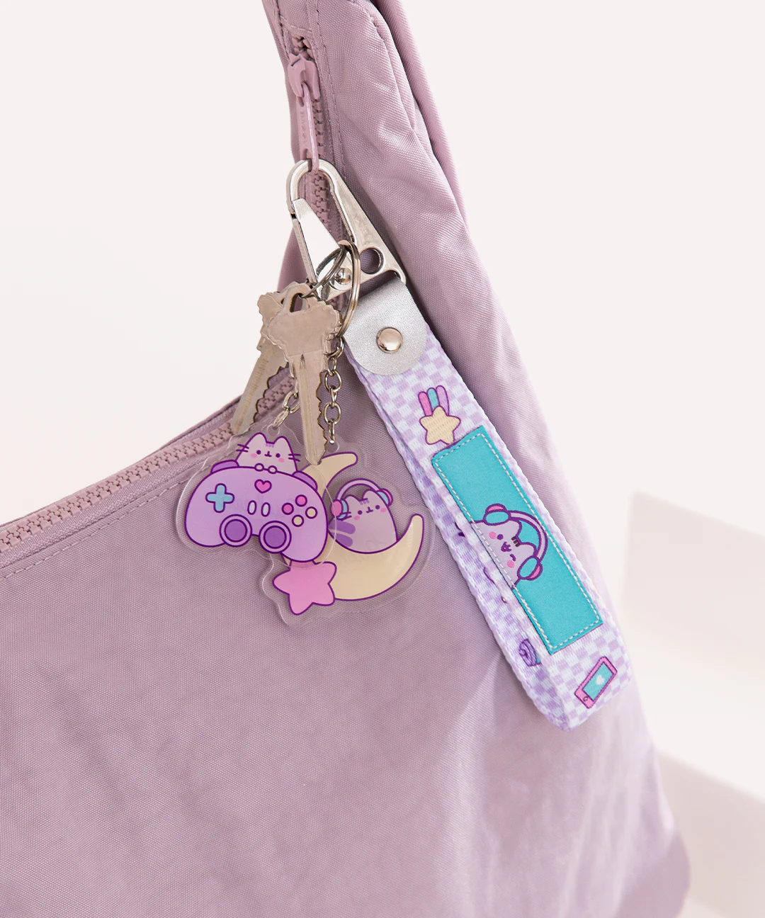 Keep Pusheen and your keys close at hand! The Gamer Pusheen Controller Keystrap has an embroidered patch. and the woven strap measures 10" long and fits comfortably around the wrist. With two gamer acrylic charms, this keystrap is the cutest accessory!