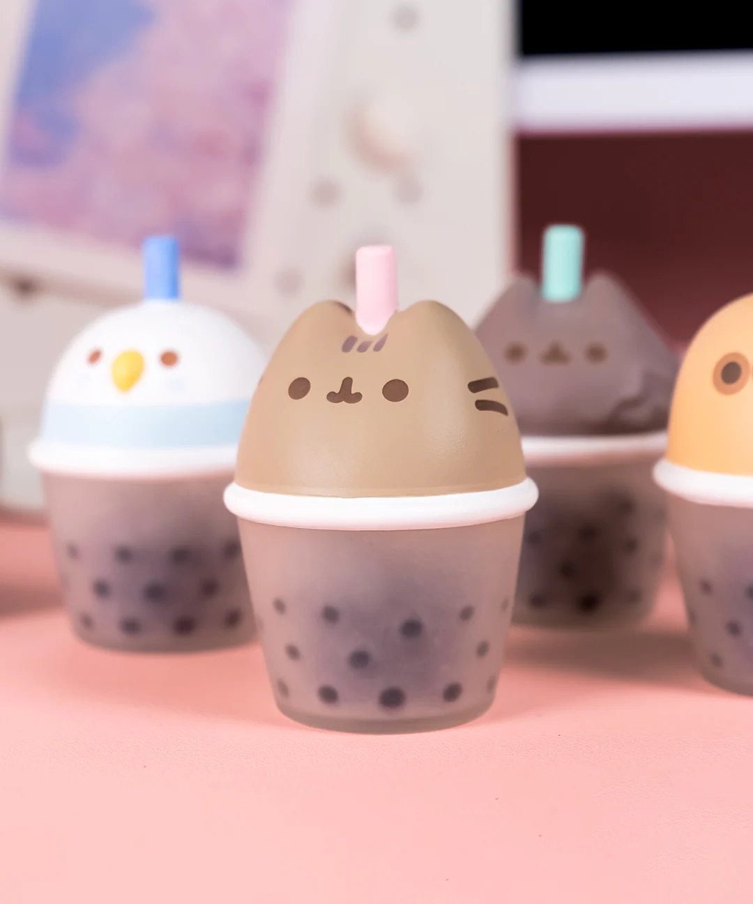 Super cute and fun to squish! Collect all five detailed & adorable boba tea designs including Pusheen, Stormy, Pip, Sloth, and Bo. Each Pusheen Boba Tea Surprise Squishy capsule contains one soft, stretchy, boba pearl-filled squishy in an eco-friendly cardboard capsule.