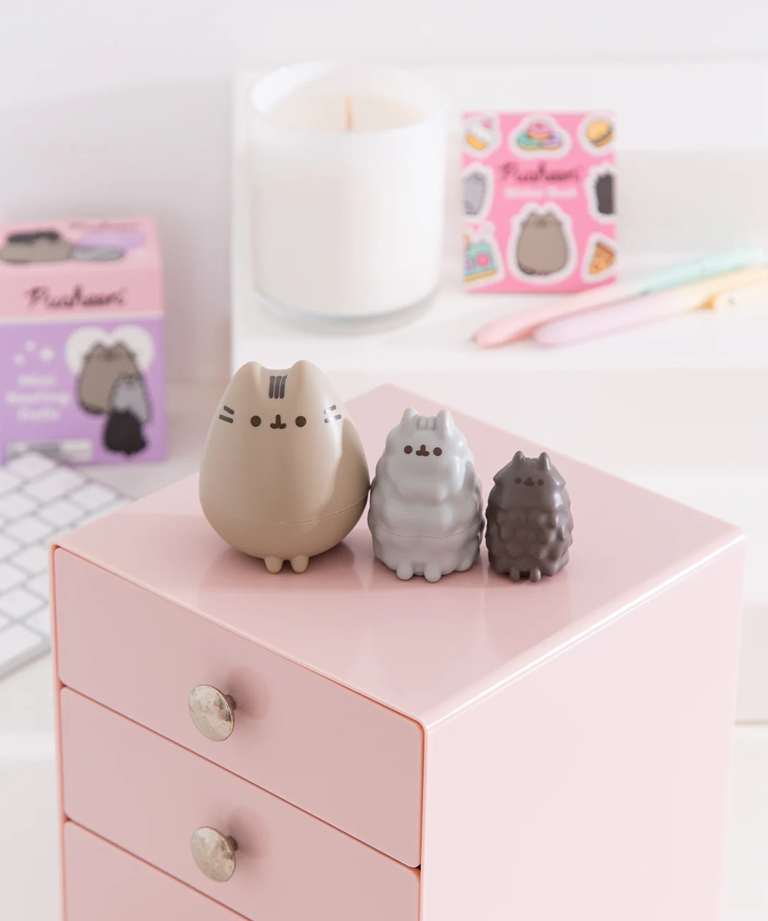 Celebrate your favorite trio with this super-cute Pusheen Mini Nesting Dolls set featuring Pusheen, Stormy, and Pip! This must-have collectible can be displayed on a desktop, mantle, shelf, and more. Included with this miniature set is a 16-page sticker book with full-color art of Pusheen, Stormy, and Pip.