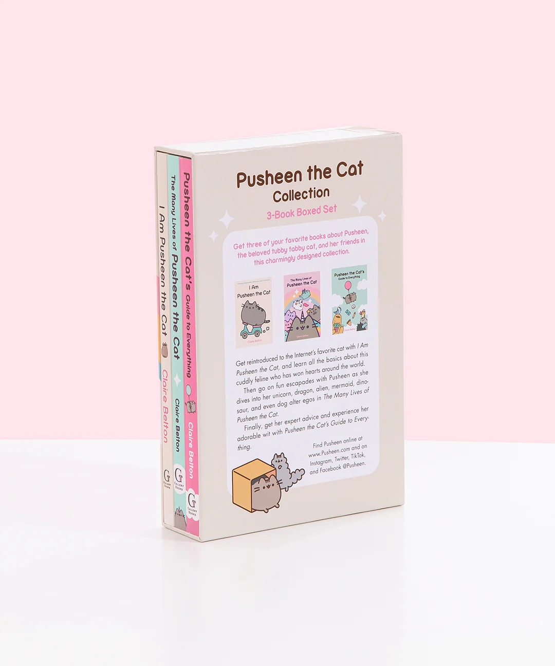 Get your three favorite Pusheen books in this charmingly designed box set! This collection includes paperbacks of I Am Pusheen the Cat, The Many Lives of Pusheen the Cat and Pusheen the Catâs Guide to Everything.  Learn all about Pusheen, go on fun escapades with Pusheen's alter egos, and get expert advice from the internet's favorite cat.