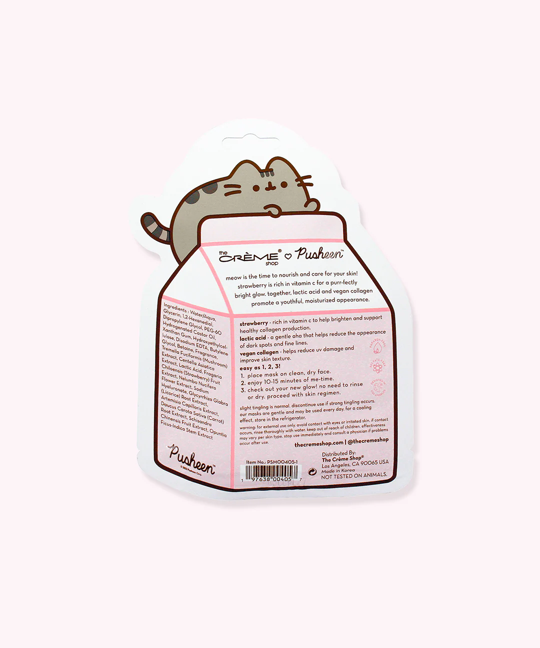 Meow is the time to nourish and care for your skin! Each Pusheen Sheet mask contains strawberry which is rich in Vitamin C for a purr-fectly bright glow, plus lactic acid and vegan collagen promote a youthful, moisturized appearance.